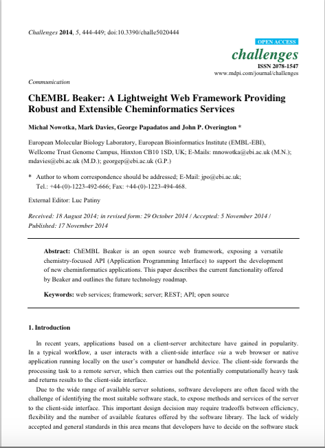 We have mentioned Beaker (a.k.a the ChEMBL cheminformatics utility web service), several times on the blog (here, here and here), but have not devoted an entire post to Beaker. Well, here it is.